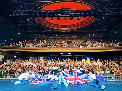 팬들 잘 보이라고 누워서 찍은 단체 사진들 모아봄