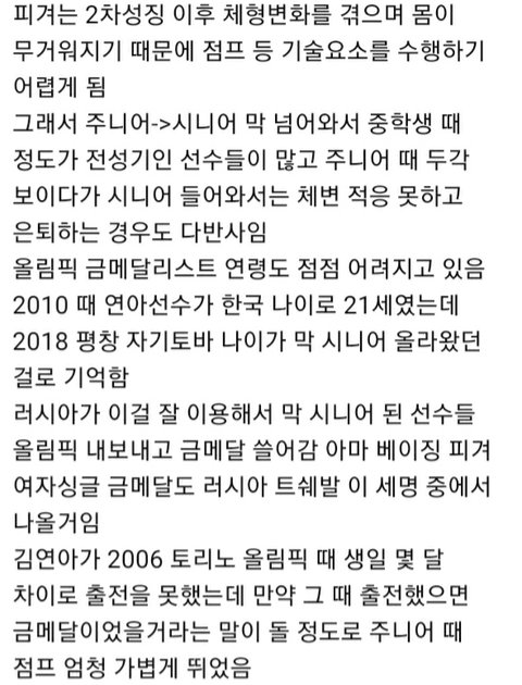 리듬체조랑 피겨는 왜 고등학교까진 잘하다가