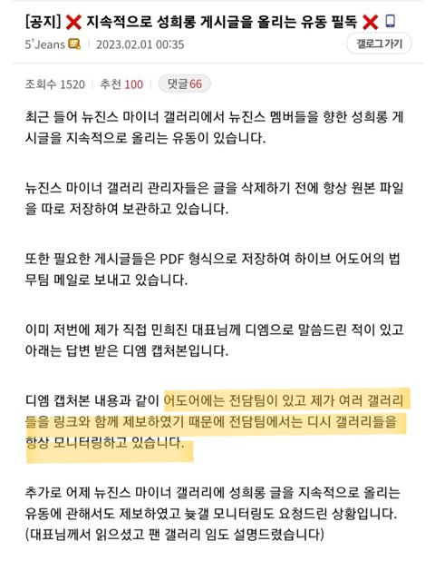 민희진이 뉴진스 커뮤니티 전담 눈팅 고소팀있대