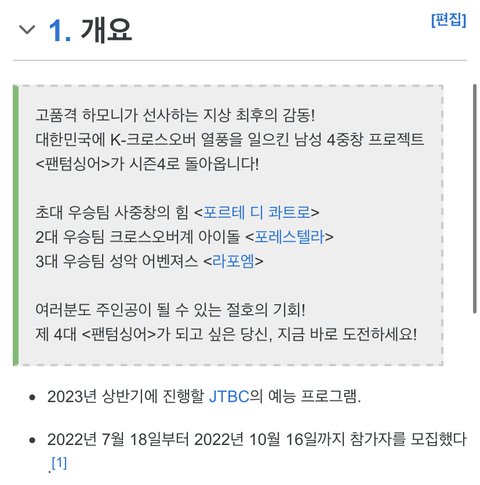 펜텀 싱어 예선 7/18- 10/16