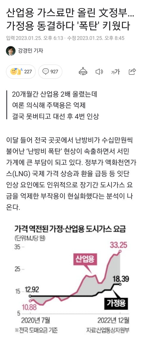 알고보니 가스비 인상 결정된 시점이 문재인 정권때인 21년 12월이더라구요
