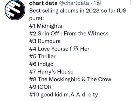 (오늘 뜬 제일 최근 자료) + 케이팝 순위? 개넘사벽임