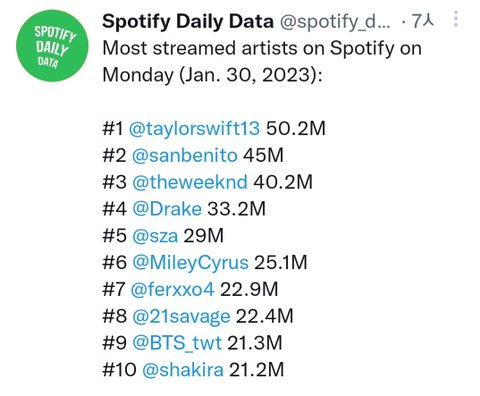 빌보드나 스포티 등 최근 방탄이랑 타돌 성적 찾아서
