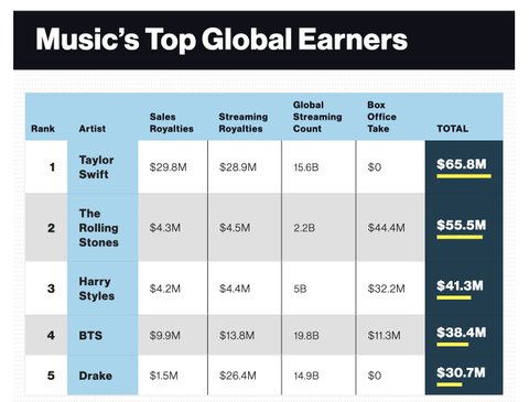 +) 2021년 전세계에서 돈 제일 많이 번 가수 4위