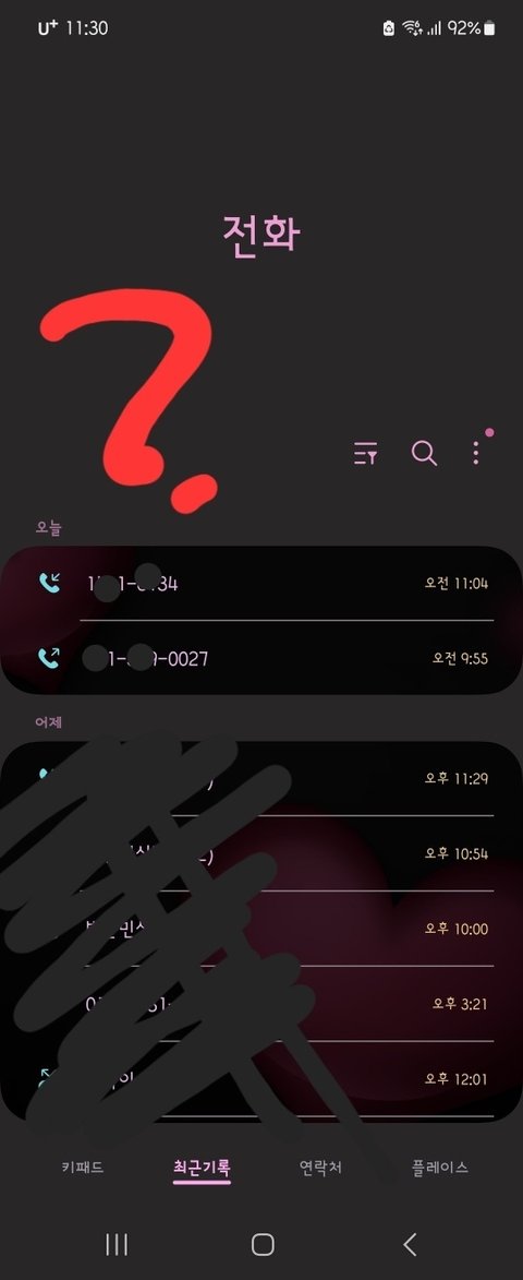 홈버튼눌러서 앱서랍만 가능해서 그냥 냅두고 잤다가 아침에 생각나서 통화목록 봤는데 기록이 없어...!!