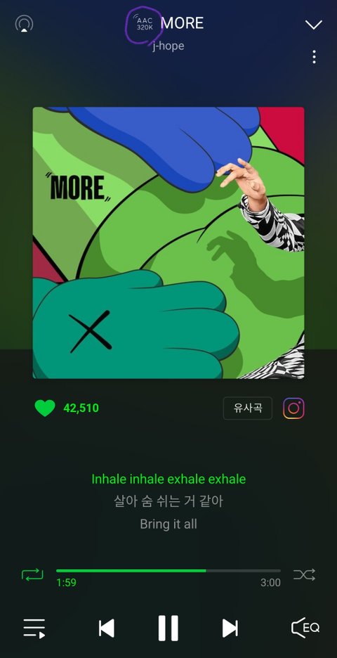 동그라미 체크한거 클릭해보면 여러가지 나오는데 aac 320k가 상위 음질임 근데 그만큼 데이터 소모량도 높아지니까 상황에 맞게 선택하면 됨 flac이 무손실 음원이라 음질은 제일 좋은데 더 비쌈 근데 이래도 멜론 특유의 기계음 섞인 듯한 소리는 지울수가 없어서 아쉽긴 해..