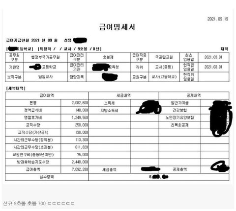 저건 명절이.끼어있는 달이니 저런거고, 시간외 방과후 저정도 받았다는건 진짜 몸을 갈아넣어가며 일을 한거임... 별로 부럽지.않다. 신규고 젊을때나 가능.