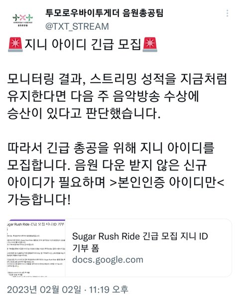 https://twitter.com/TXT_STREAM/status/1621151273025421314?t=KoCOe5C_zdSw_GbjZbxW7A&s=09