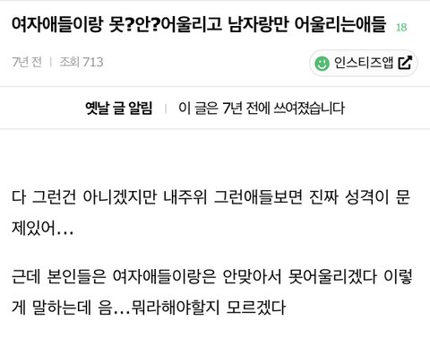 남자랑은 잘 친해지는데 여자랑은 못친해지는애들 ,, ㅜㅜ