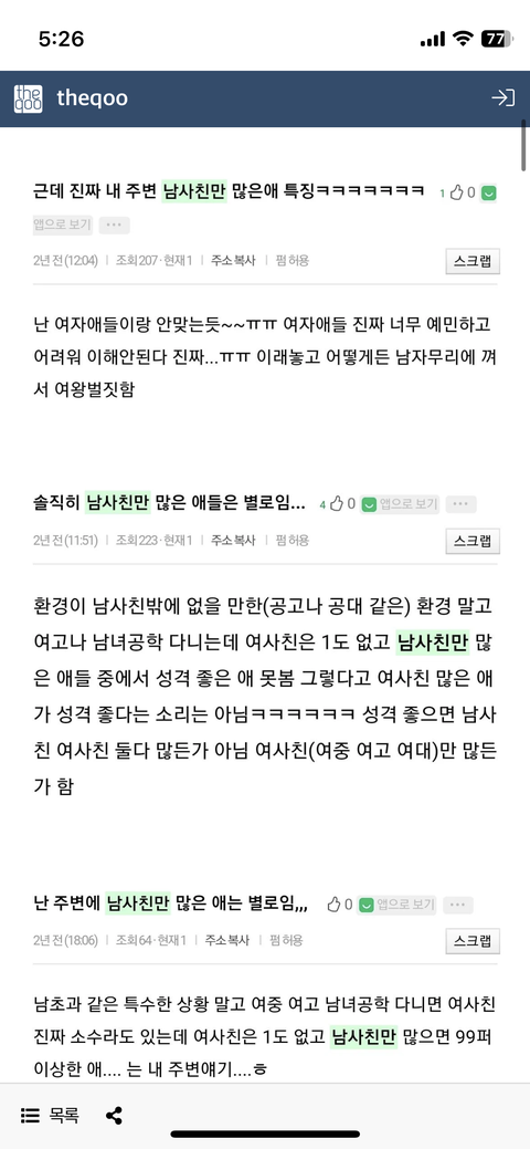 이거 사회성 없는 여자애들 특징임 ,, ㅜㅜㅜ