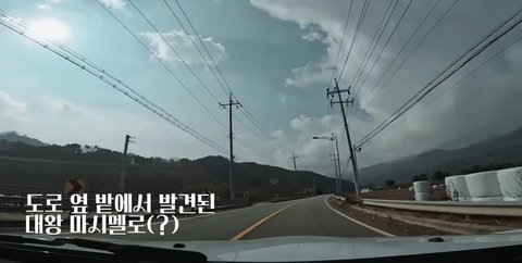 도로 옆 밭에서 대왕 마시멜로를 발견한 트와이스