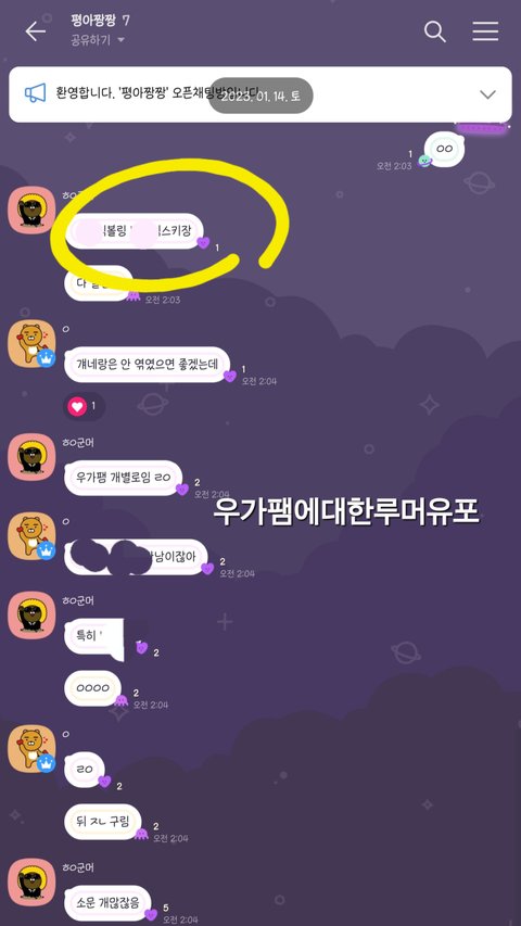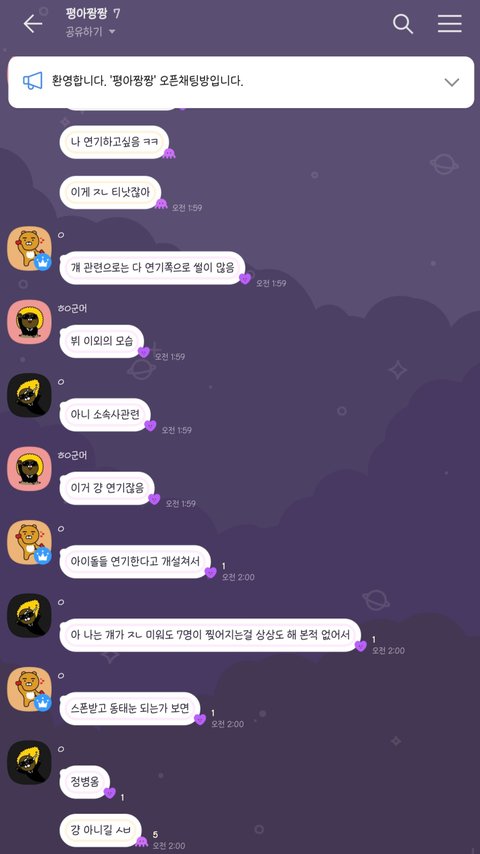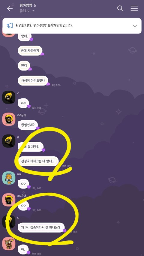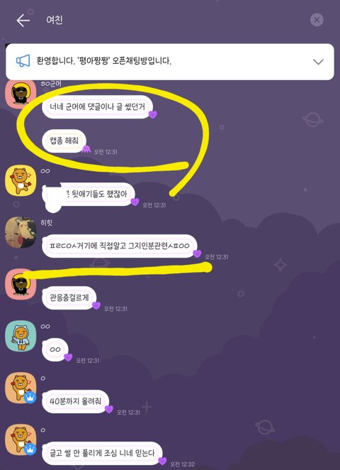 나도 우연히 발견하고 무슨얘기하는지 들어간거라 그냥 이렇게 수준낮게 노는구나 나중에 말나오면 증거로 보태게 캡쳐나 해야겠다 싶어서 안쫓겨나려고 추임새 맞추면서 있어준거임