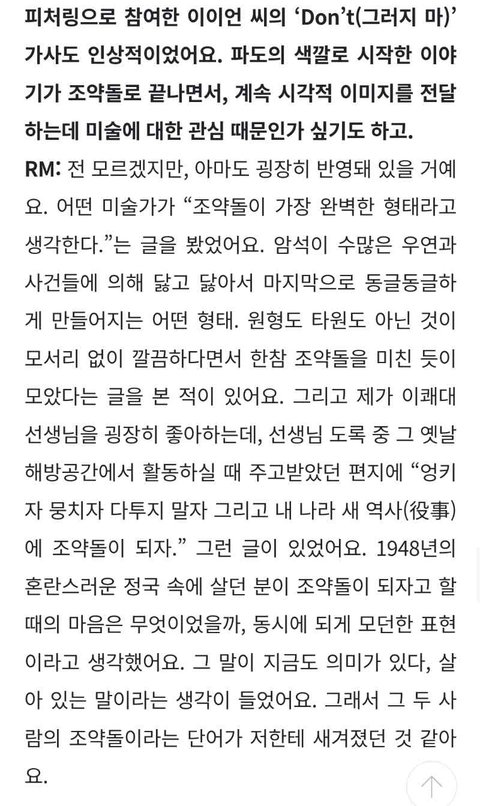 조약돌하니 생각나는 남주니의 언급