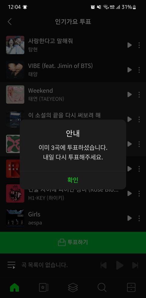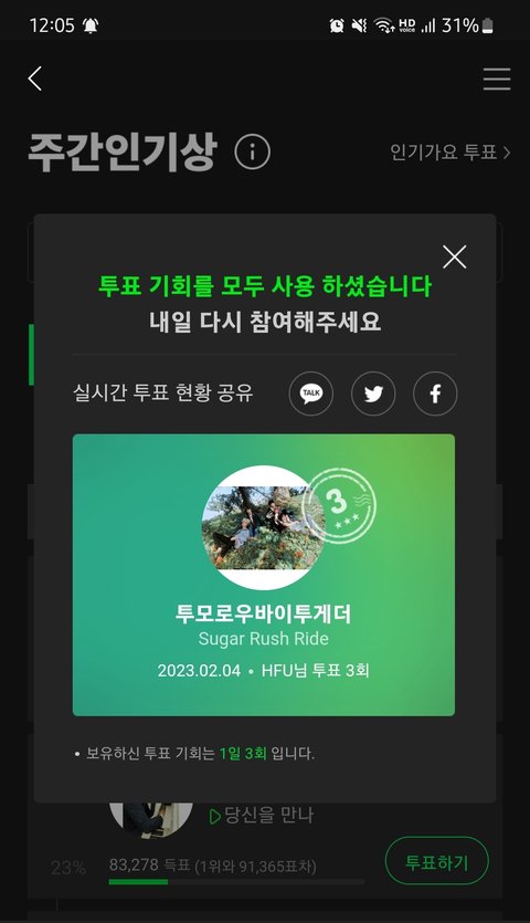 자정지나써 주간인기상 인기가요 사전투표!!!!!!