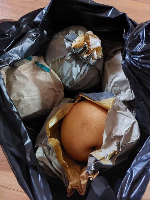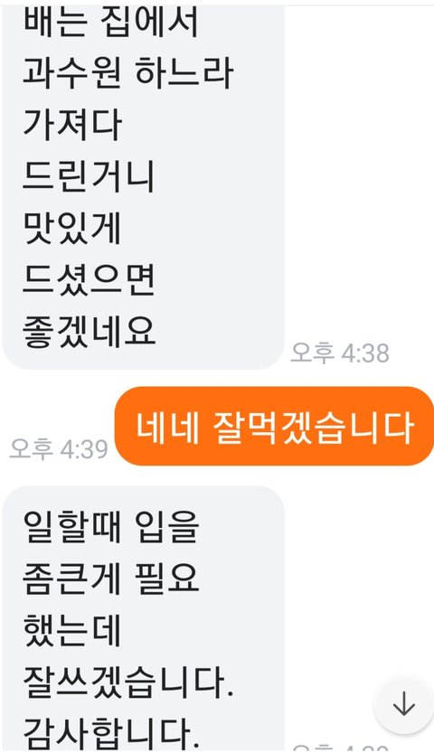 입지 않는 잠바 나눔 하고 싱싱하고 즙이 많고 맛있는 배 다섯개를 선물로 받았네요