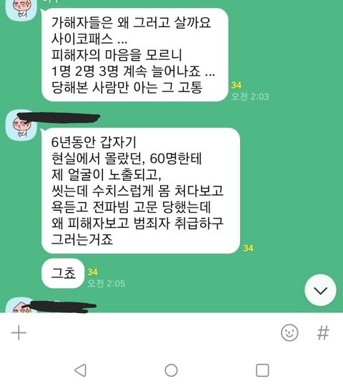 그렇게 사람을 괴롭혀 대는지 이해가안가더라고요.ㅋㅋ 어이가없습니다. 진짜.