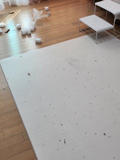 부속품 부자재 싹 놔두고 가고, 플라스틱 뚜껑도 저보고 다 알아서 치우라 그러는데다 온 바닥에 석회가루 천지.. 전선은 잘라서 그냥 바닥에 튕겨 버리고...