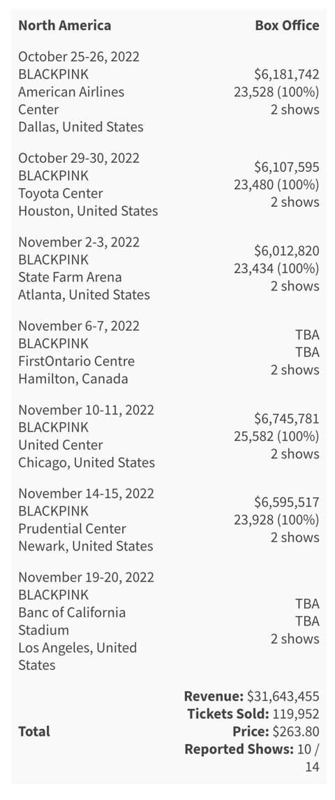 2. 블랙핑크 14회(투어링 데이터 10회 완료, 4회 발표전)