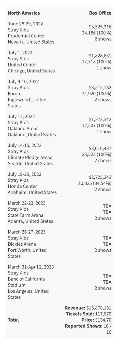 3. 스트레이키즈 10회(2022년 공연 완료, 미 발표는 앙콘 공연)