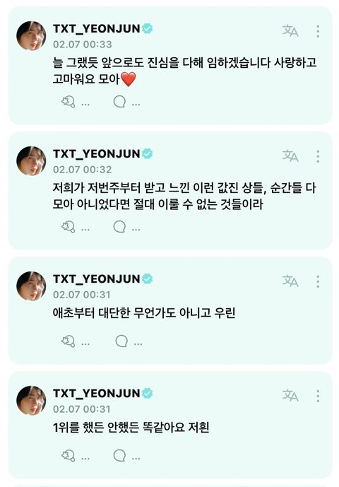 진짜 ㅠ 얘네만 보고 버틴다 하루 하루 성장하는 투바투