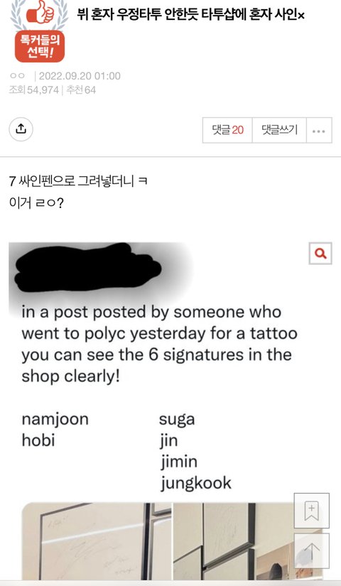 타투이스트한테 뷔 타투로 조카지랄한 방탄팬들 ㅠ