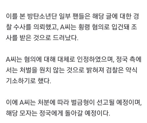 결론은 정국 측에서 처벌을 원하지 않아 약식 기소