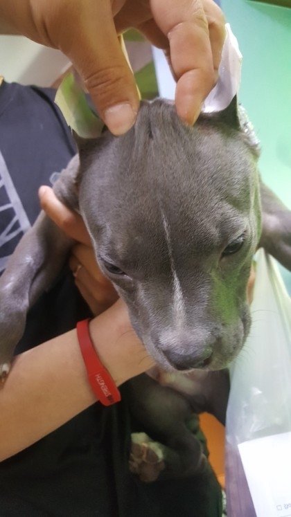 아메리칸 불리라는 종인데 대부분 단이, 단미 (미용 목적으로 귀랑 꼬리 자르는거) 하는 경우가 많거든