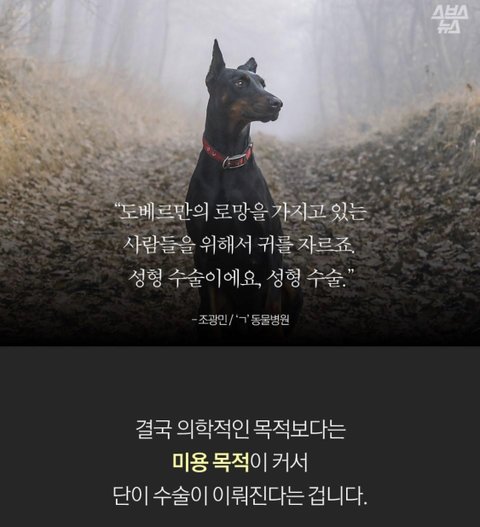 원래 사람들이 과시하려고 도베르만이나 불리처럼 멋있어보이는(?) 품종 키우고 그 이후로 단이랑 단미하는 경우가 대부분인데