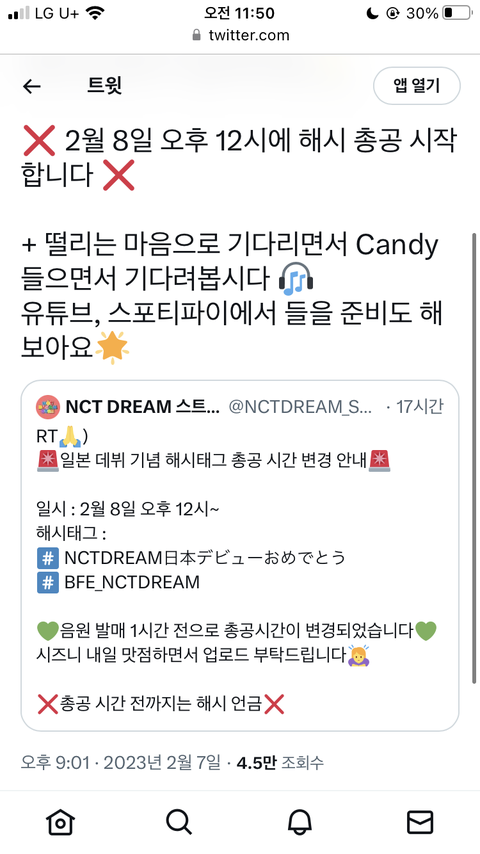 관련링크 https://twitter.com/NCTDREAM_STRM/status/1622928474787962881?s=20&t=7DbuzYYaT9ff8wF9donNLg