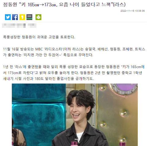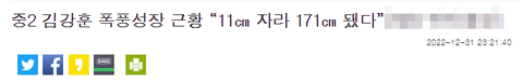 작년 연말 시상식에서 11cm자라 키 171cm됐다는 강훈이