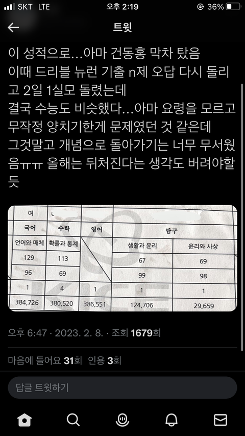 수학이 4인데 건동홍 막차로라도 들어간게 ㅈㄴ다행임... 이과였으면 지거국 하위 공대 엔딩이야