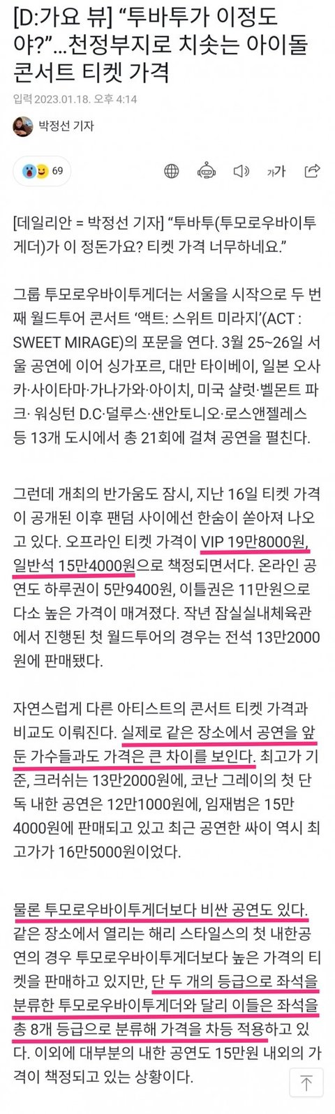투바투 앨범(2023년 발매) 218만장 매출액은 약 304억