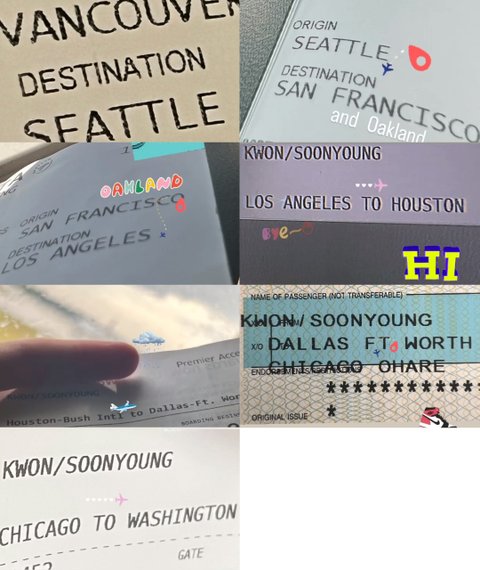 - 이번 미주 투어 한달내내 하루도 빠짐없이 호텔 식사팟 사진 찍어서 올려줌 / 지역 이동할때마다 티켓사진 올려서 공유해줌