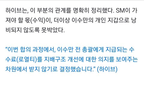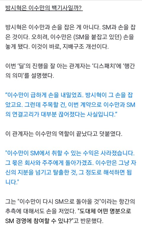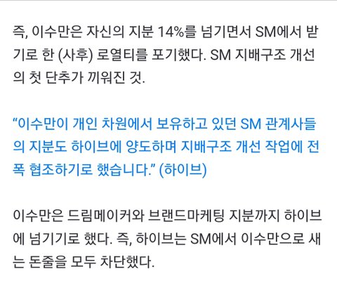 하이브가 sm이수만 지분사고 늘리겠다는건 최대주주되는대신