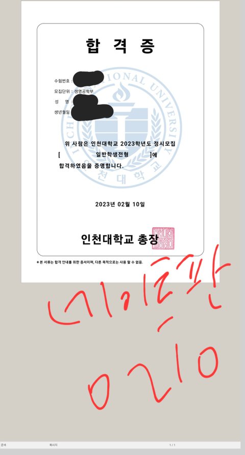 나도 대학 간다!! 인천대 생명공학과는 빠질거니까 다음 예비 1번 있으면 안심해라