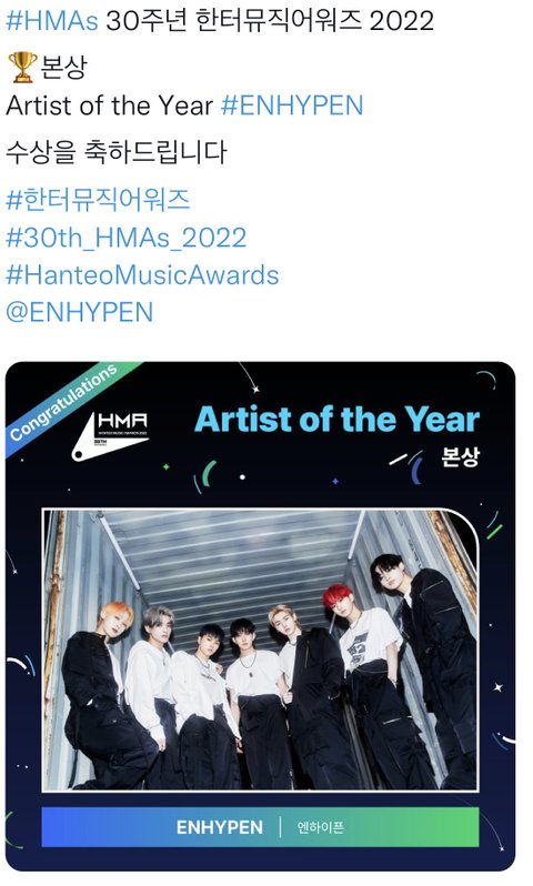 한터뮤직어워즈 본상 받음!!!!!