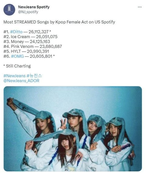 케이팝 여자그룹/솔로곡들 중에 미국 스포티파이 누적수치 1위됨