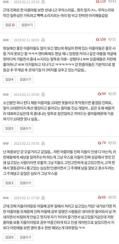 여기서 말하는 판줌들이 우리판 줌마들 같아서...