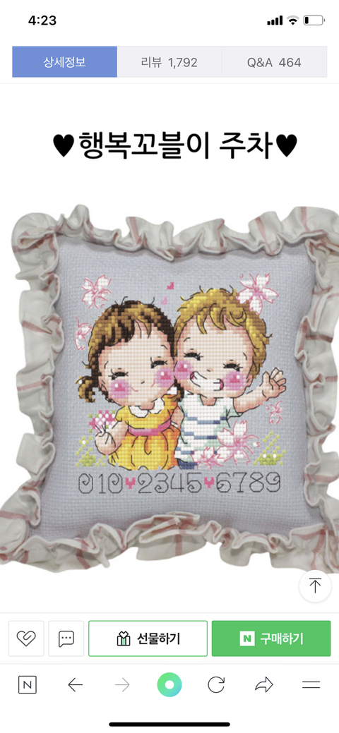 남친 생일선물로 이 십자수 쿠션 어떤가요