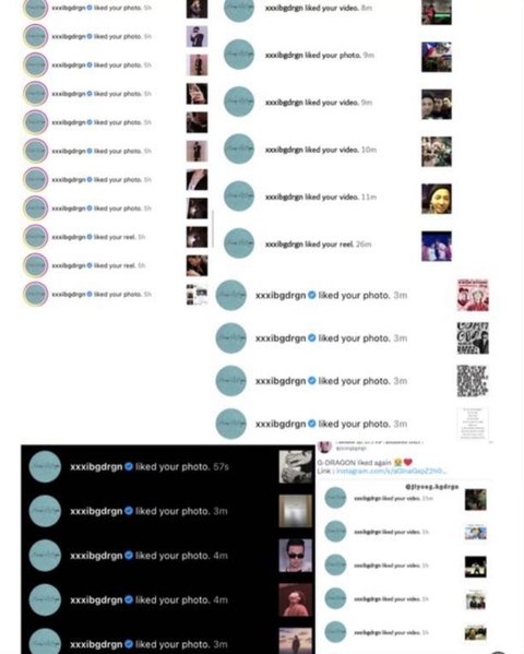 지드래곤이 승리의 인스타그램 좋아요를 계속 누르고 있다.