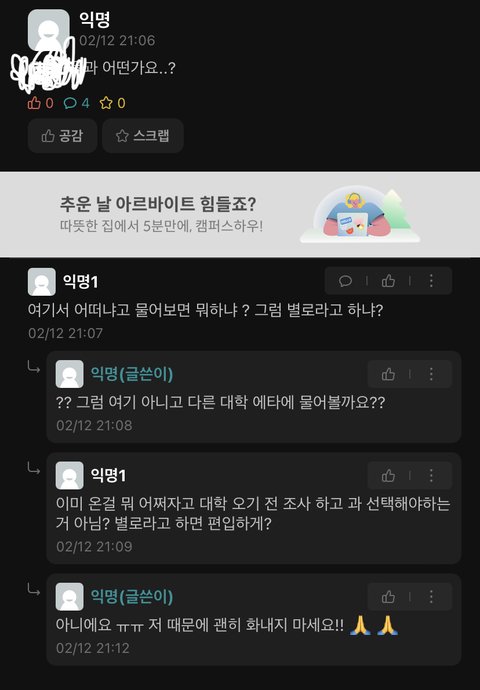 근데 에타 댓글 보면 다 저런식임ㅋㅋㅋㅋ 쿨병 걸린척 개ㅐㅐ띠겁게 말함