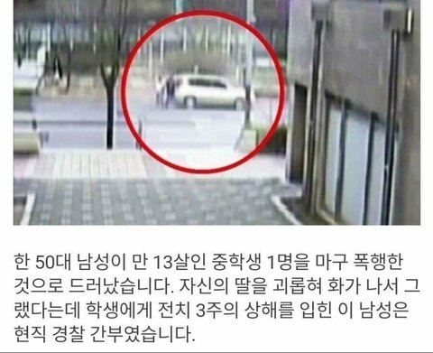 성인 남자가 여중생을 '마구' 때렸는데 어떻게 전치3주밖에 안 나옴? 딱 봐도 B양이 말로 엄청 자극해서 폭행 유도했을 거고, 그마저도 엄청 과장해서 신고했네. 구체적인 내용 없고 그냥 전치 3주 이러는 거 보면 빼박임.