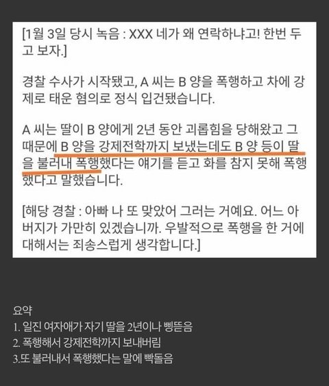 이거는..와..2년동안 맞고 돈뺏긴것도 참고 피해자가 되려 전학까지 갔는데 그걸 또 쳐 불러내서 때린거면 내가 애아빠면 칼들고 찾아갈듯 와 어떻게 저러냐