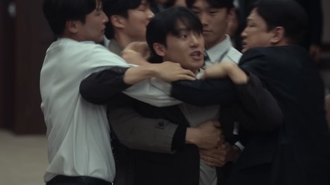 혼비백산한 채로 경찰들 사이를 헤집는 연진