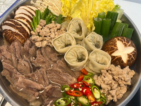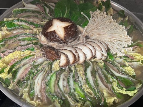 동네에 만두전골 맛집이 있ㅅ어서 남편이랑 먹으러 갔다가 비주얼이 너무 예뻐서 따라 해본 아롱사태 만두전골!