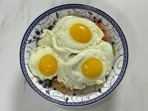 계란을 좋아하는 남편을 위해 특별히 비빔밥 위에 계란 3개~~