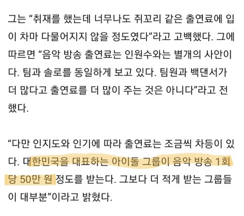 출연료가 이리 짠줄 몰랐음ㅜ