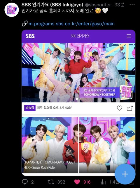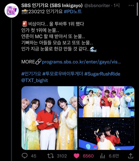 이정도면 인기가요도 투바투 1위하는거 기다렸을듯ㅋㅋㅋ