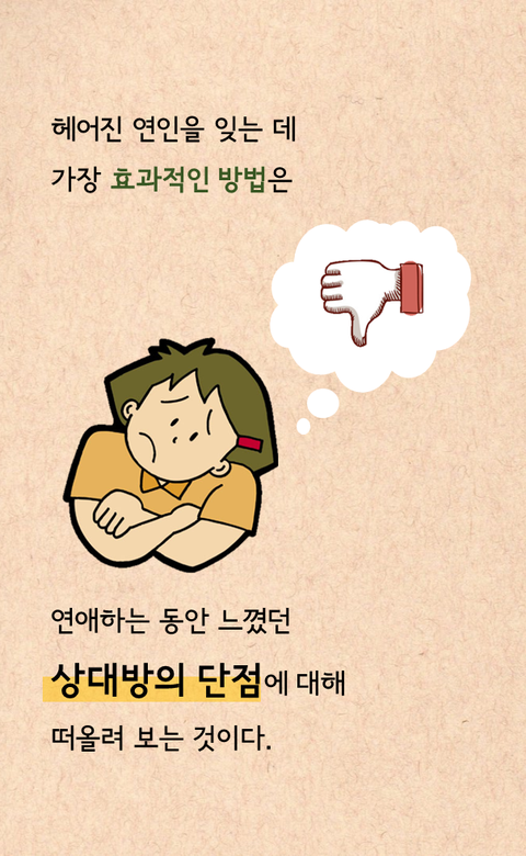 이성을 잊기위해 남녀 서로의 단점을 찾으려는 행동임