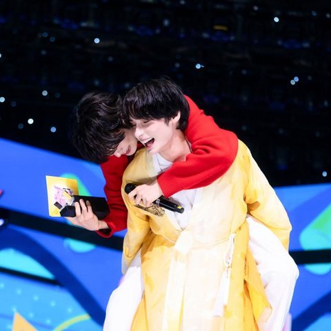 인가 1위했다고 막내가 맏형 업어줬음